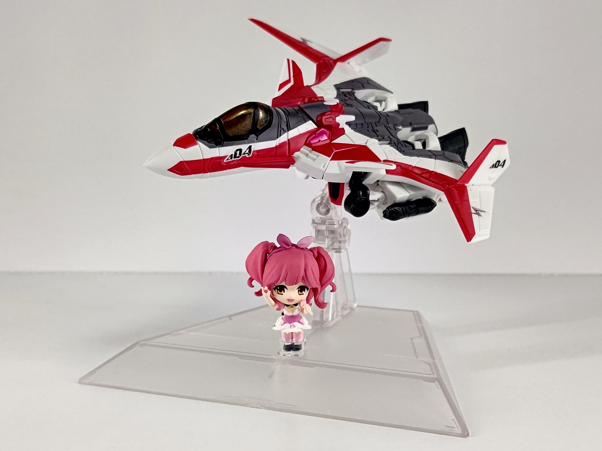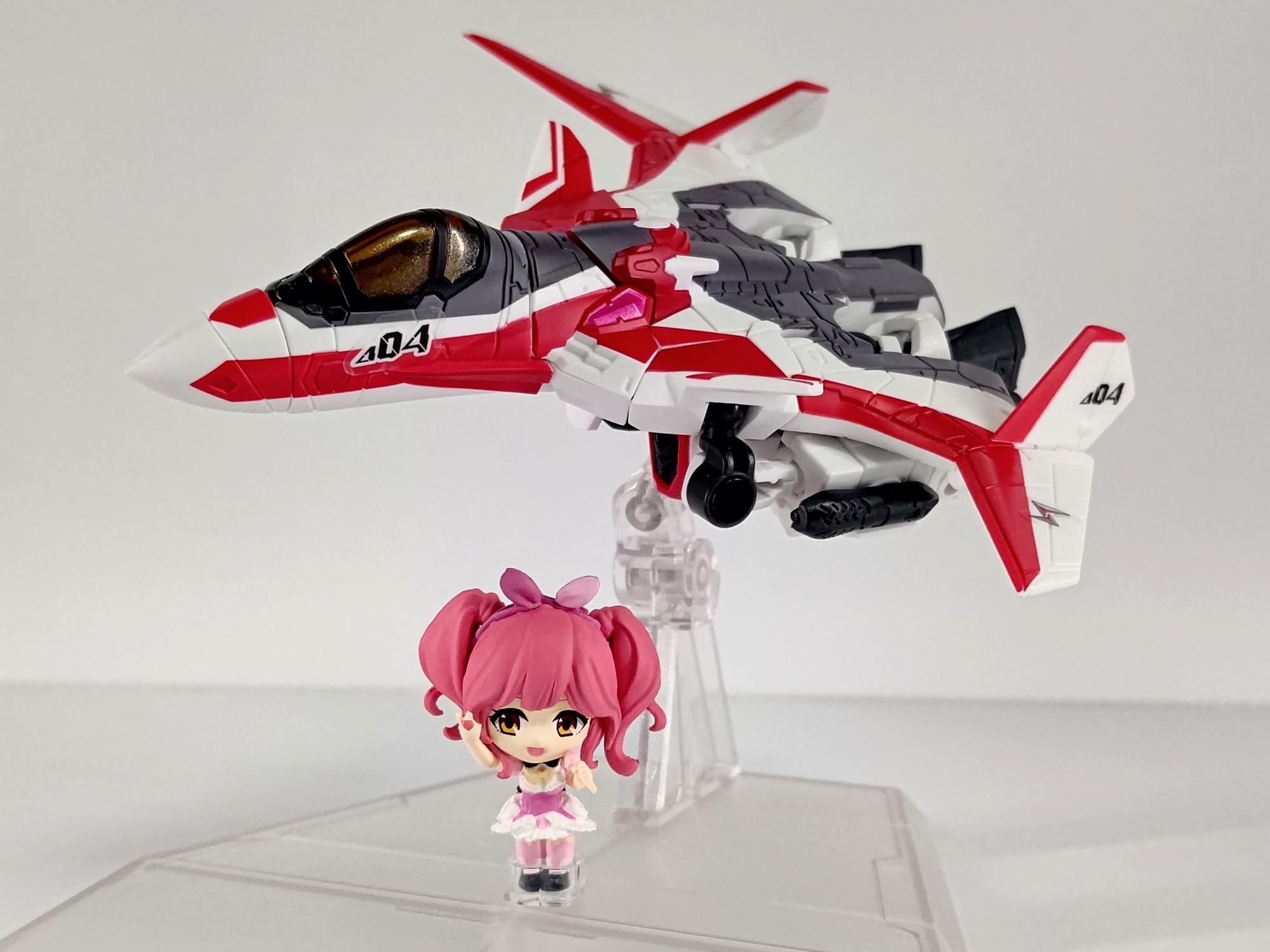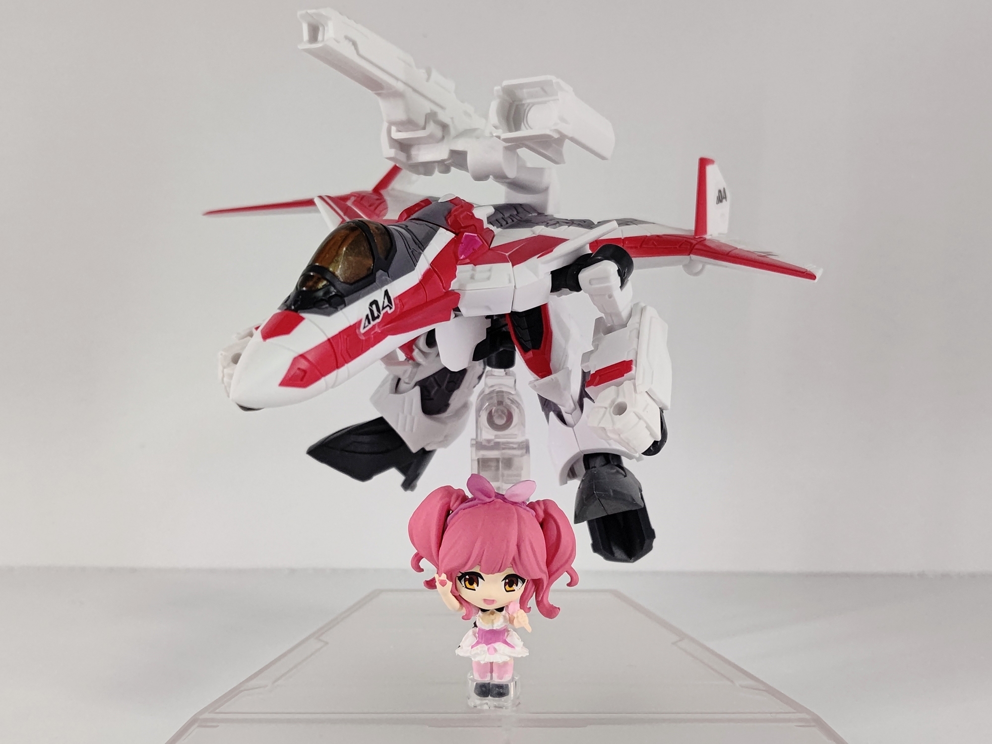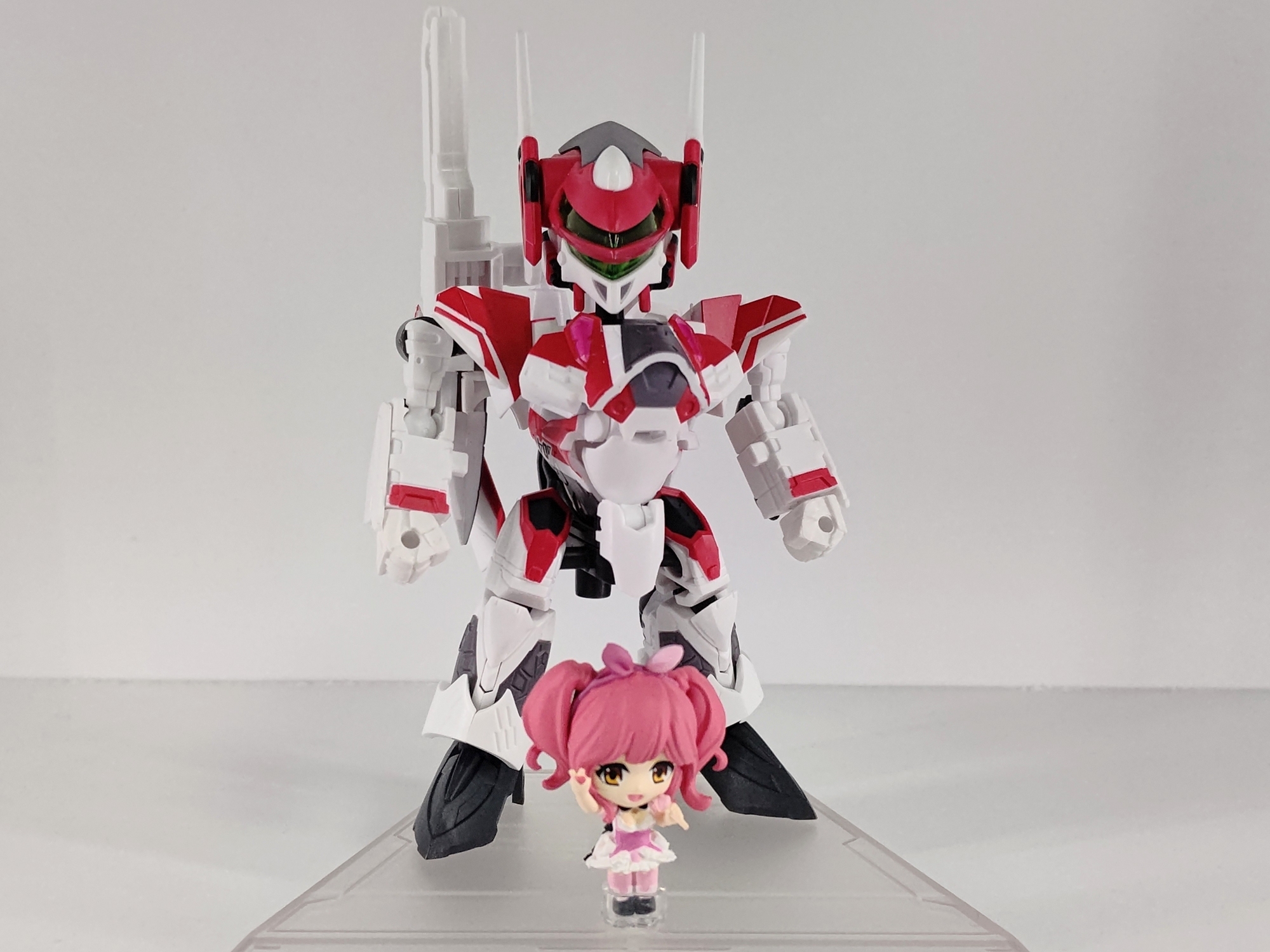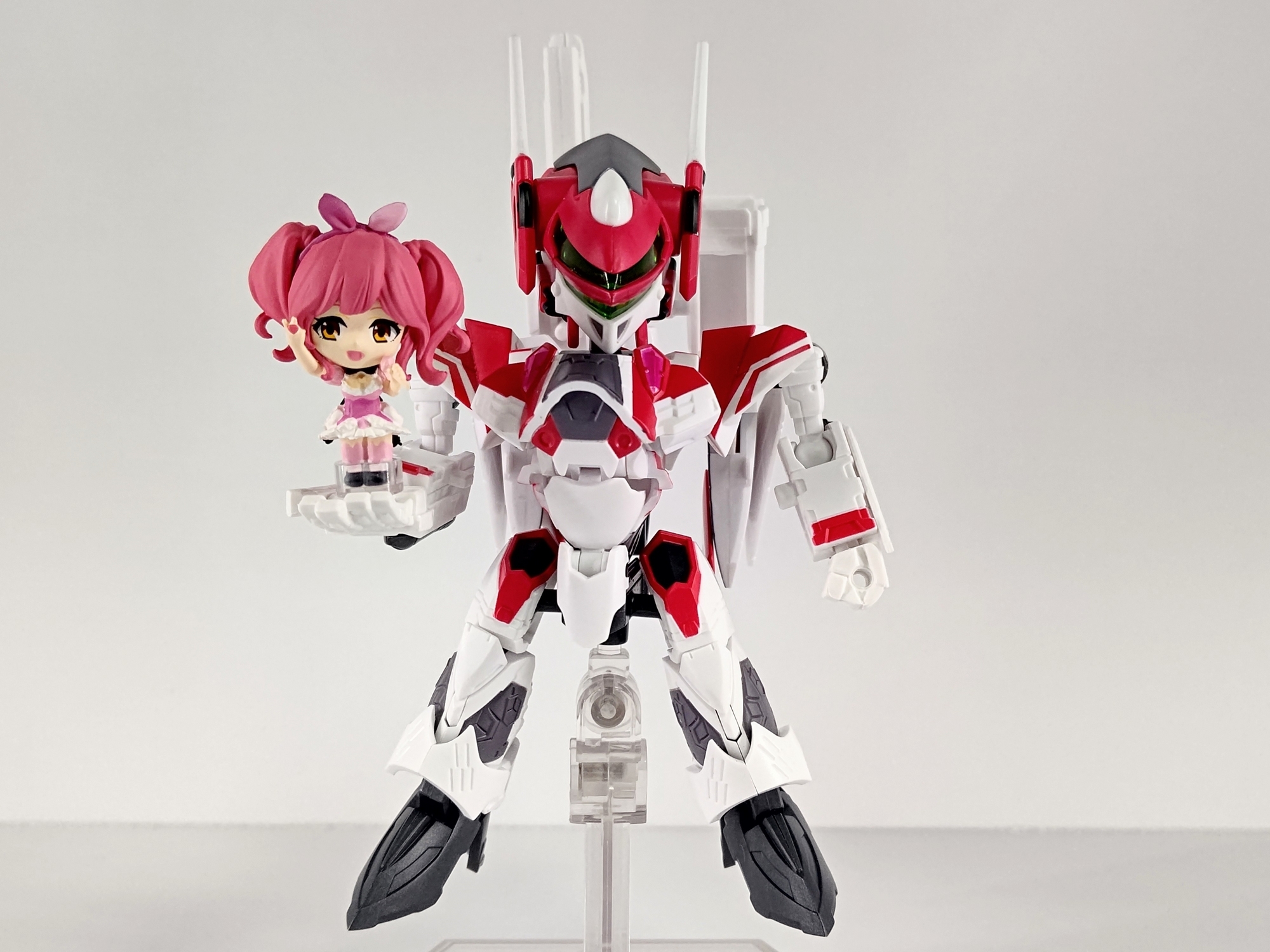 バンダイの『マクロスΔ タイニーセッション』。SDのジークフリードとワルキューレメンバーのセット。5人揃えるのは大変なので一番好きなマキナ&ミラージュ機を購入。ミニサイズながらジクフリを3形態に変形できるのがポイント。