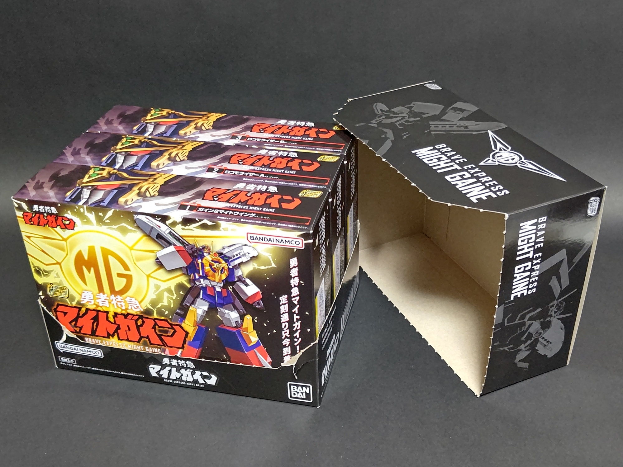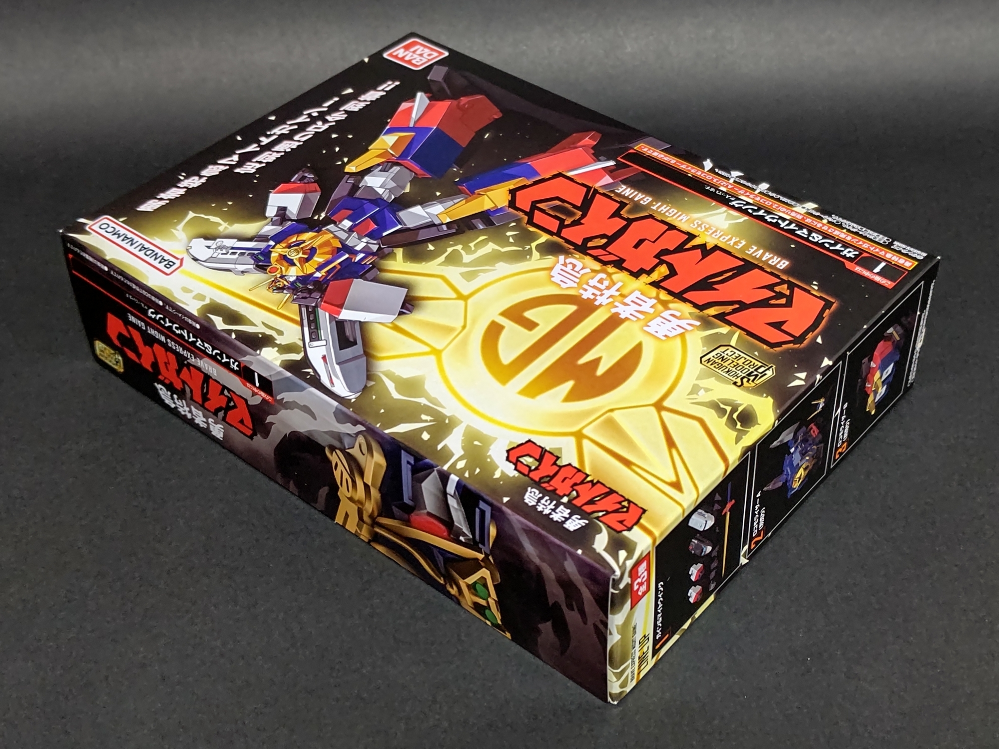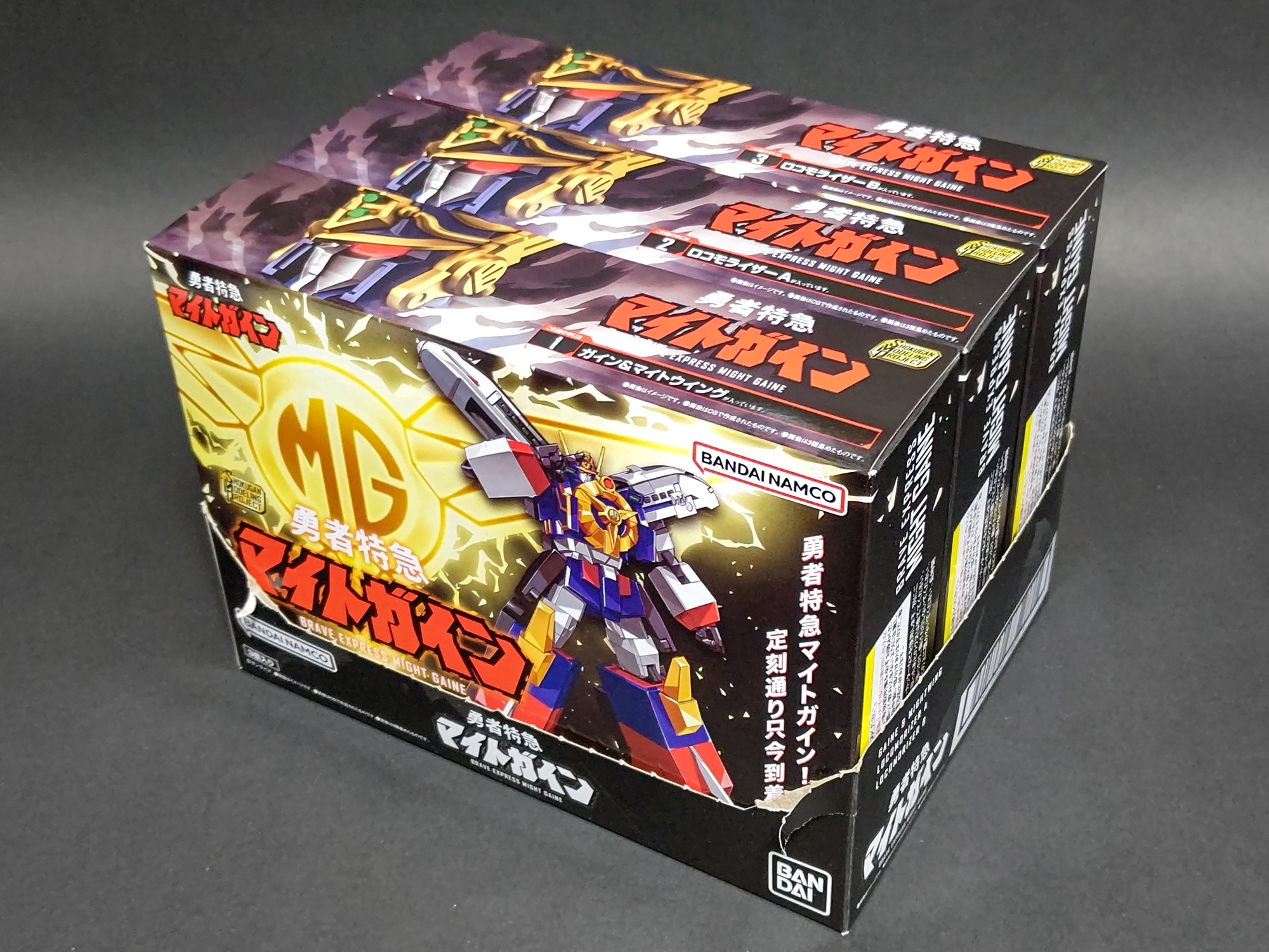 まずは1番の箱から。箱の正面にはマイトガインのイラスト。箱のデザインは基本1~3番で共通です。