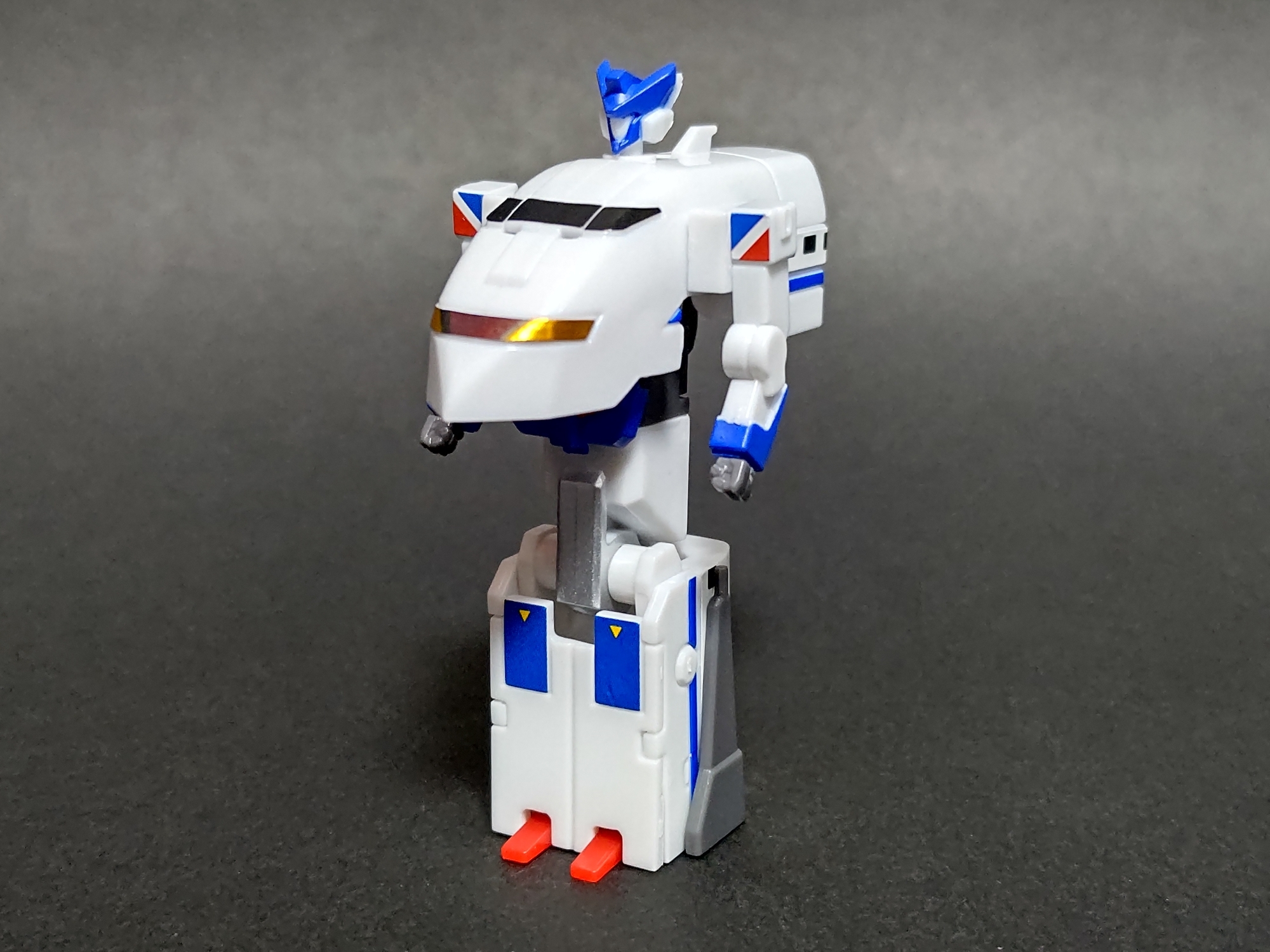 新幹線の形態に変形するのが前提のため、頭がかなり小さく両足はくっついていて両手も細くやや不自然な位置にあります。これ単体でみるとあまり出来の宜しくないプロポーションですが、戦隊モノやヒーローモノの合体メカのお約束のようなものなので逆に懐かしさを感じます。