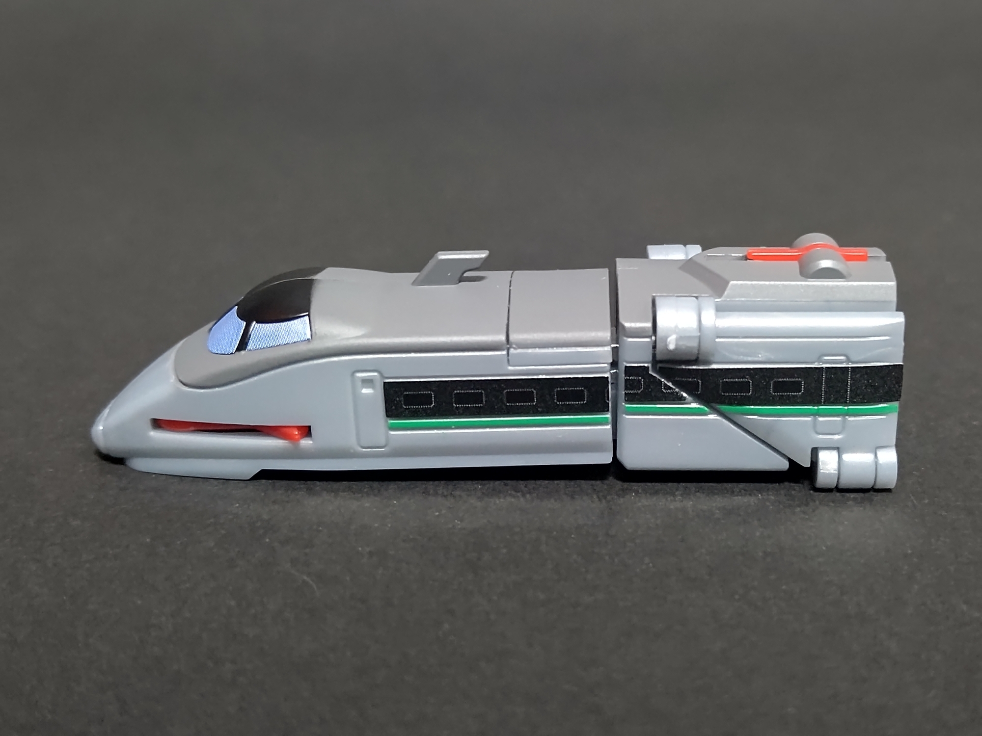 この形態でできるギミックなどは無いですが、形状はしっかり新幹線って感じですね。