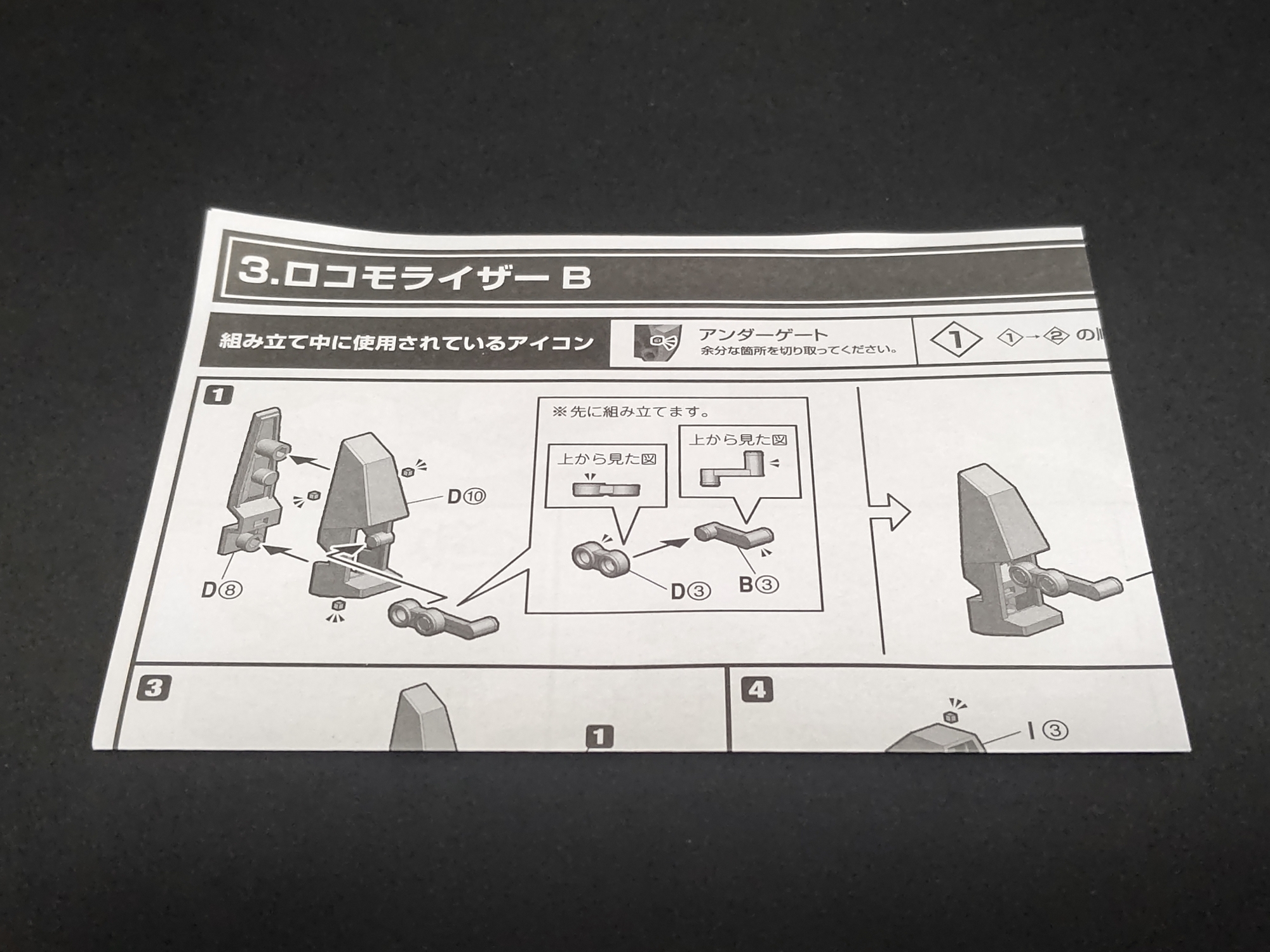 説明書はロコモライザーAの組み立て説明と、マイトガインへの変形合体の説明が入っています。