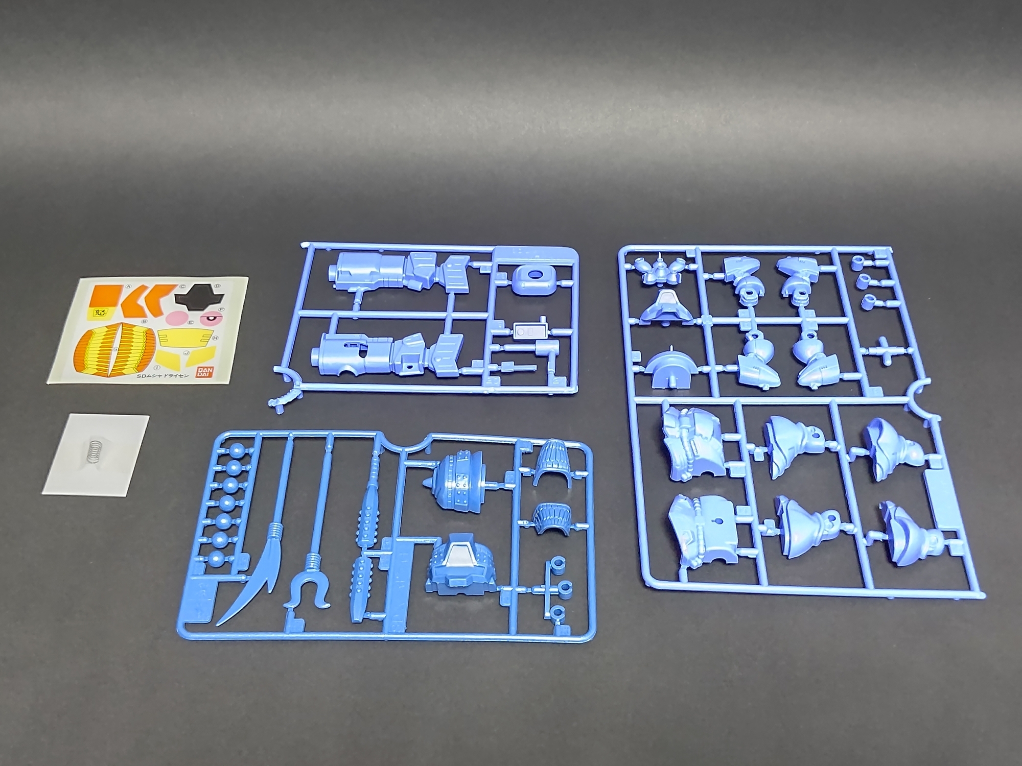 薄い青のランナーがドラクンの流用で、濃い青のランナーが武者ドライセンでの追加パーツって感じですね。前述の通りポリキャップはありません。ポリキャップレスキットの先駆け?(違う)