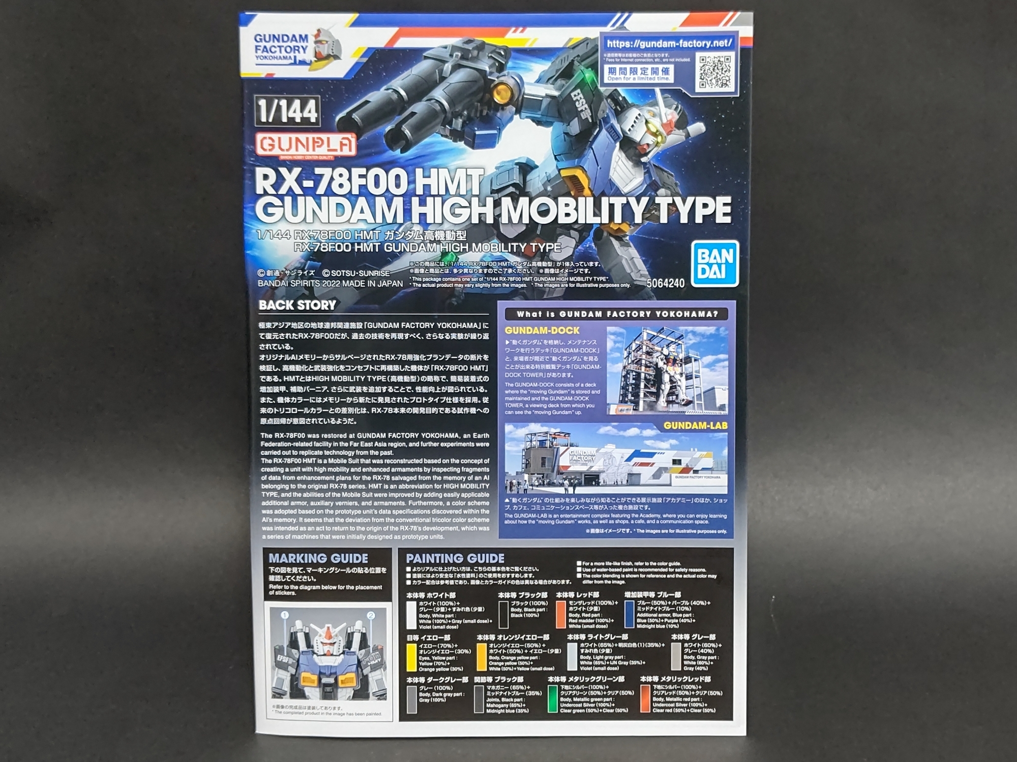 横浜にあるガンダムファクトリー横浜で買ってきた「1/144 RX-78F00 HMT ガンダム高機動型」を作りました。本キットはガンダムファクトリー横浜にある動く等身大のガンダムをイメージしたキットをベースに、成型色の変更+新規パーツを追加したものになっています。