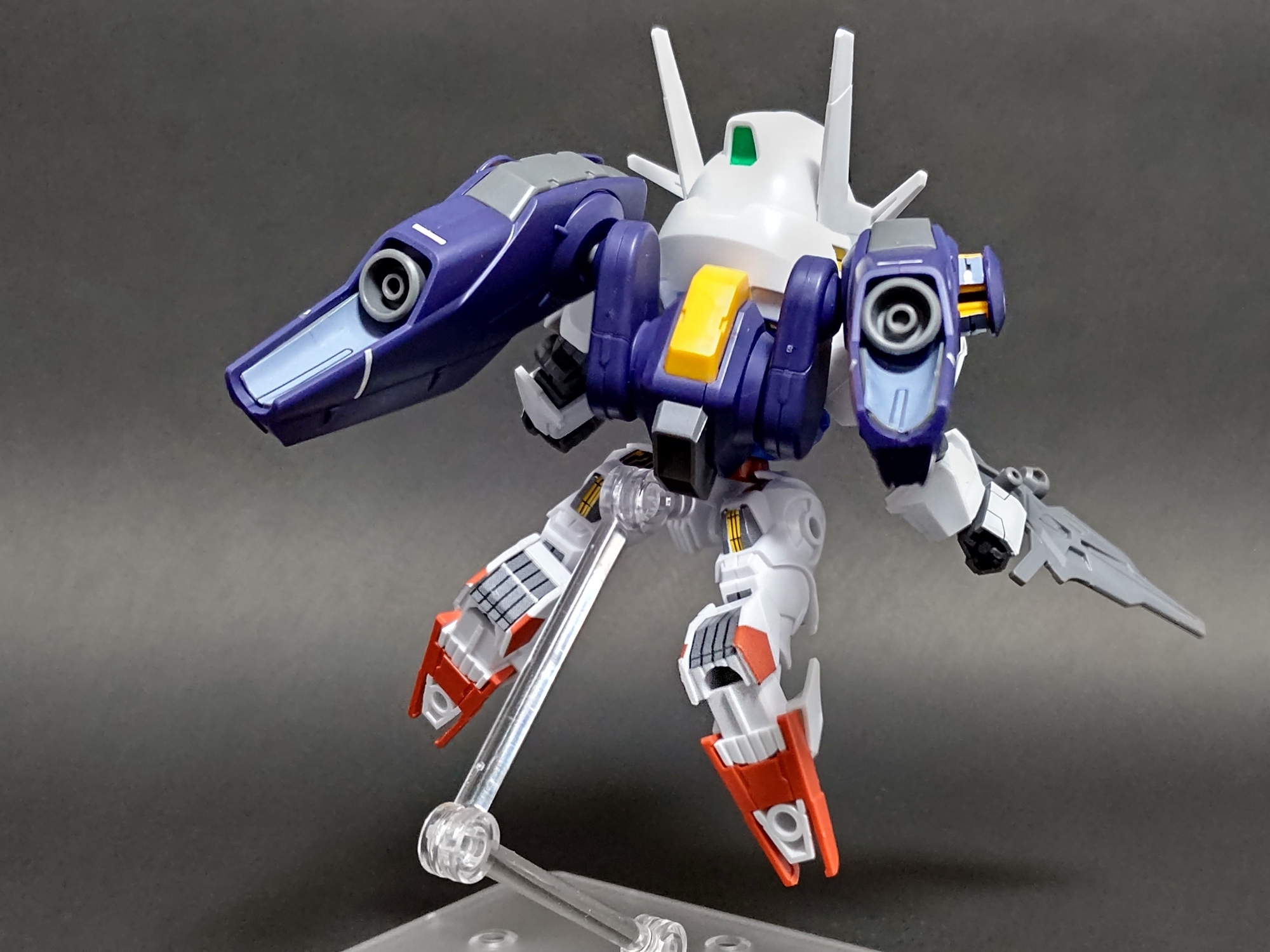 後に発売されたHGキット用の「ミラソウル社製フライトユニット装備」は本キットにも普通に装着させることが可能です。